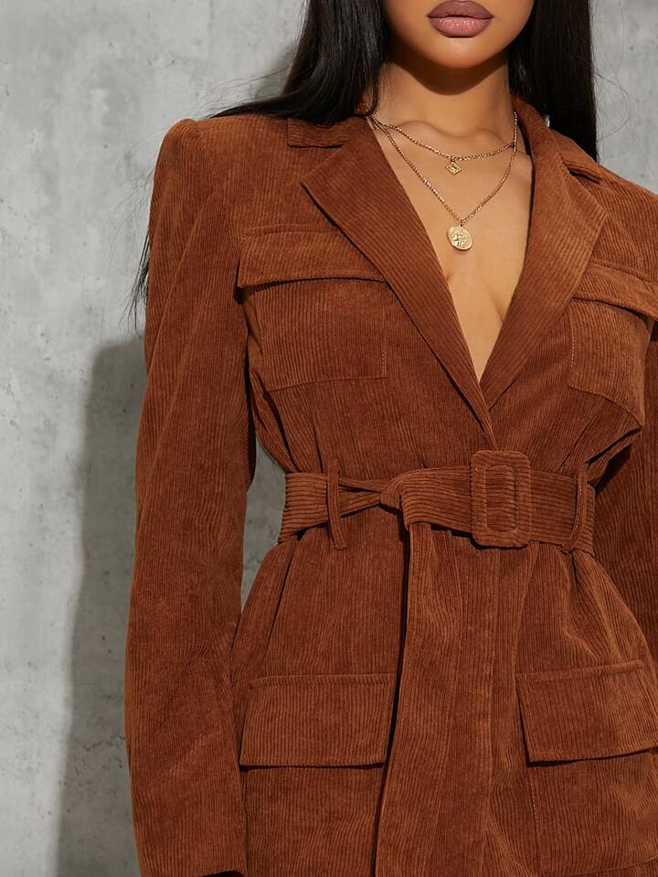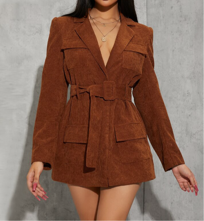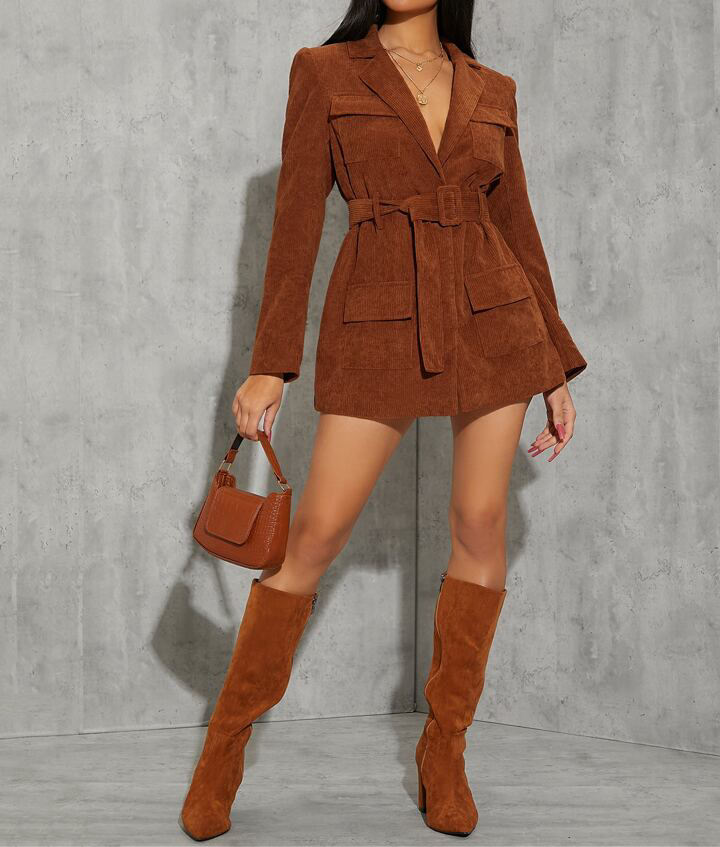 Brown Corduroy Blazer Dress
