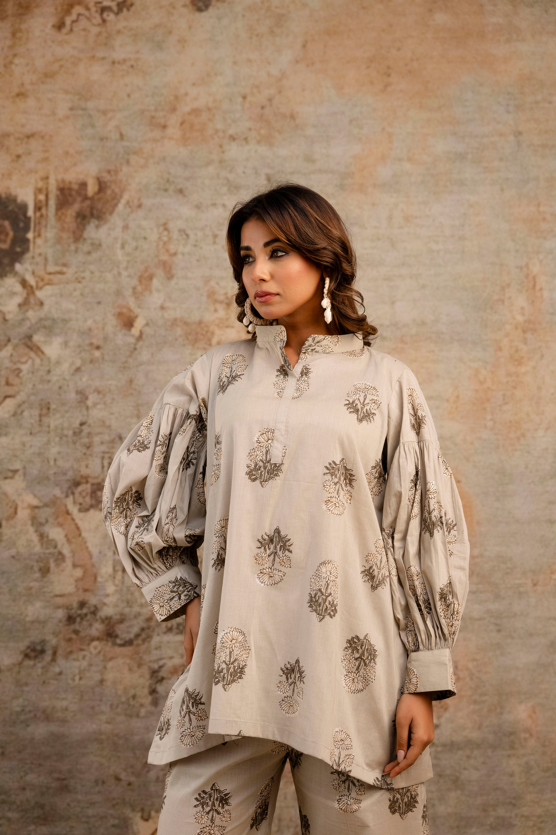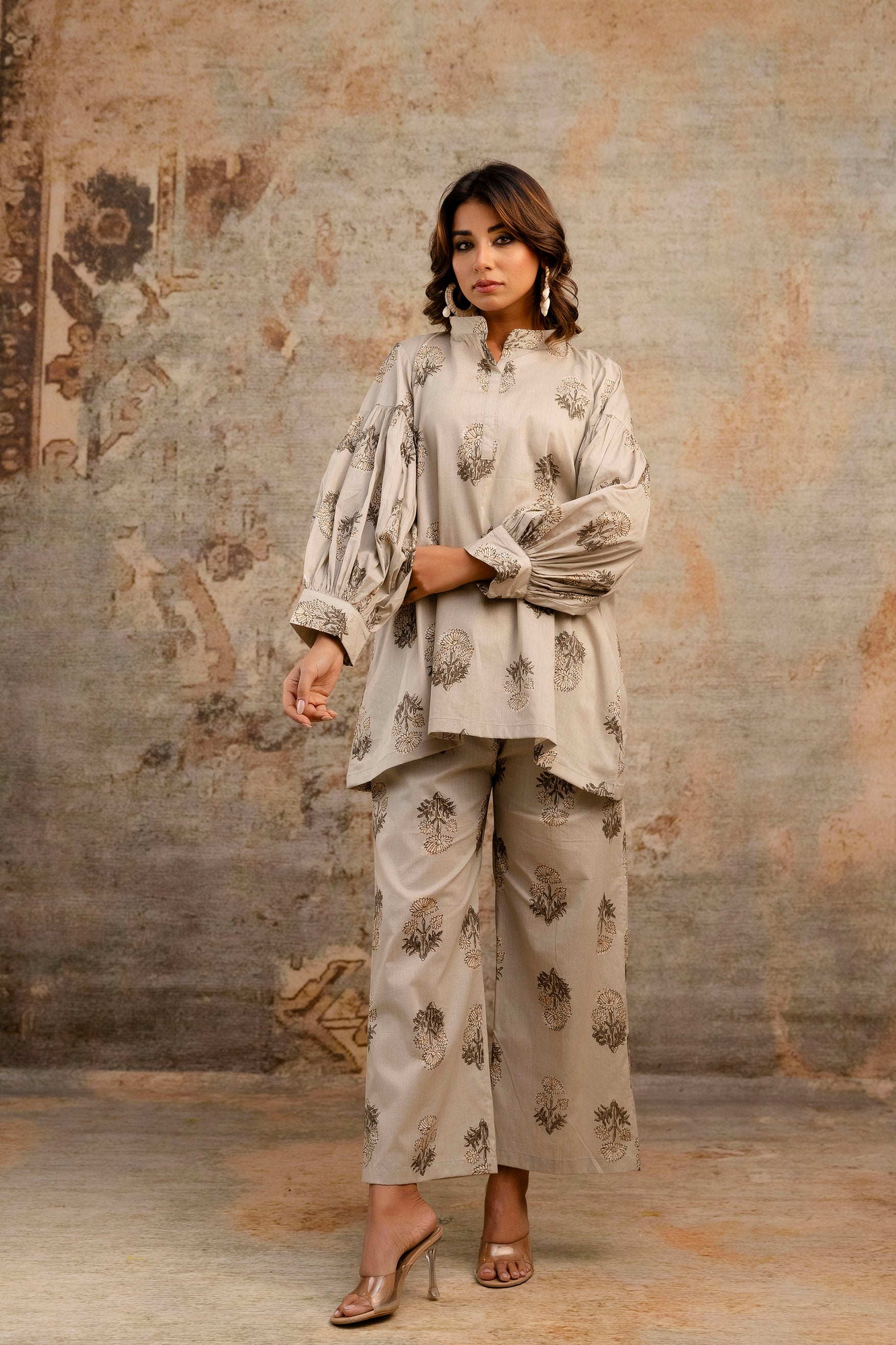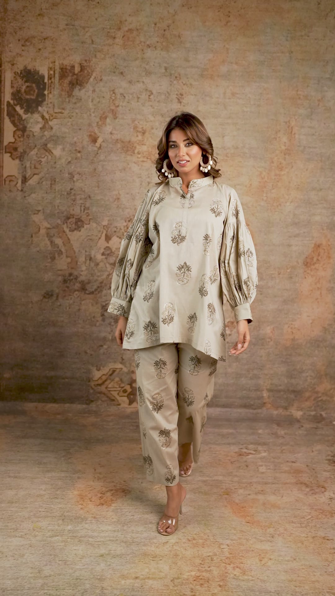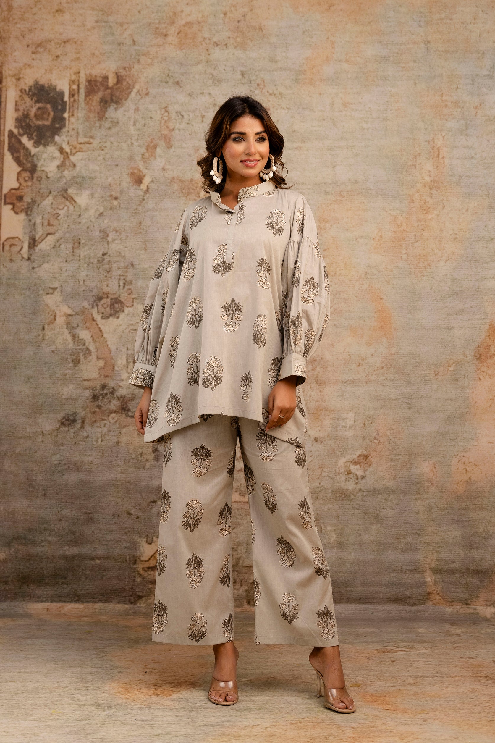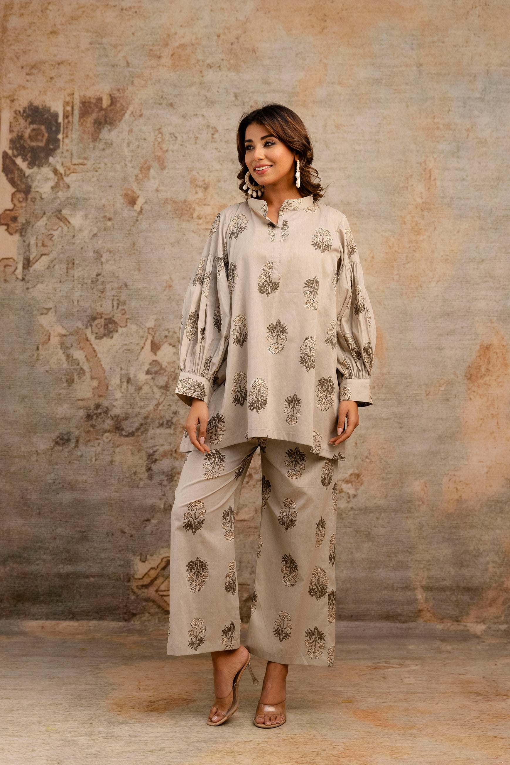 Elegant Beige Coord Set With Relaxed Sleeves
