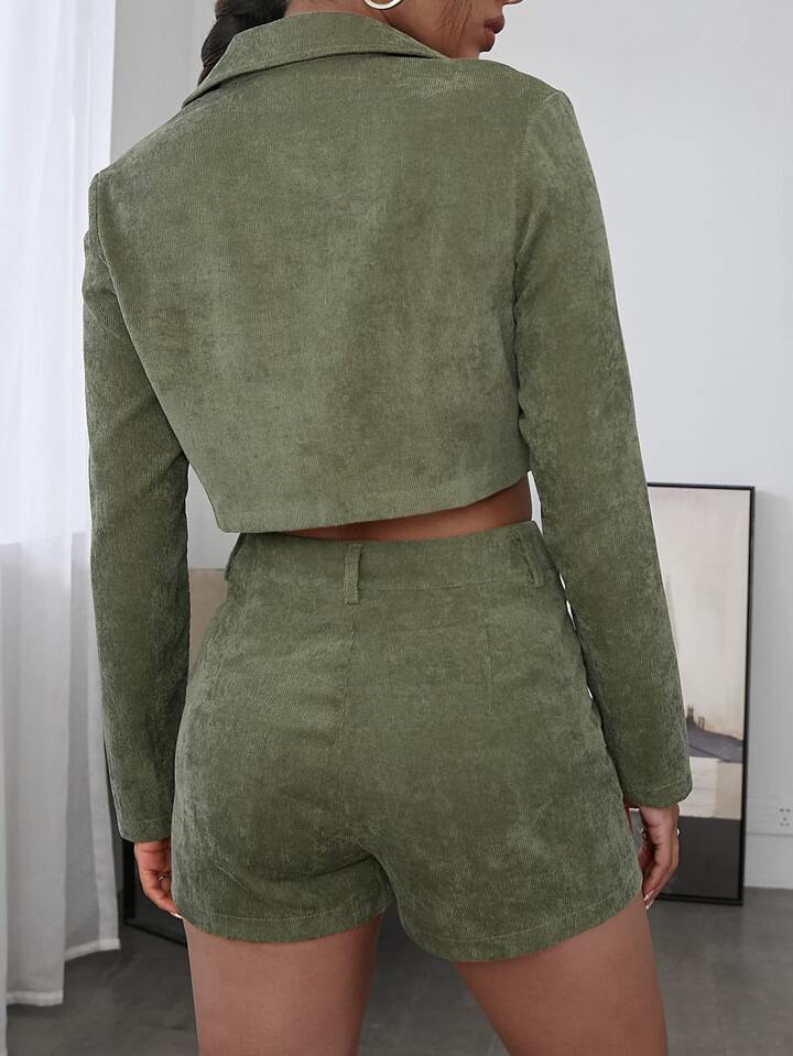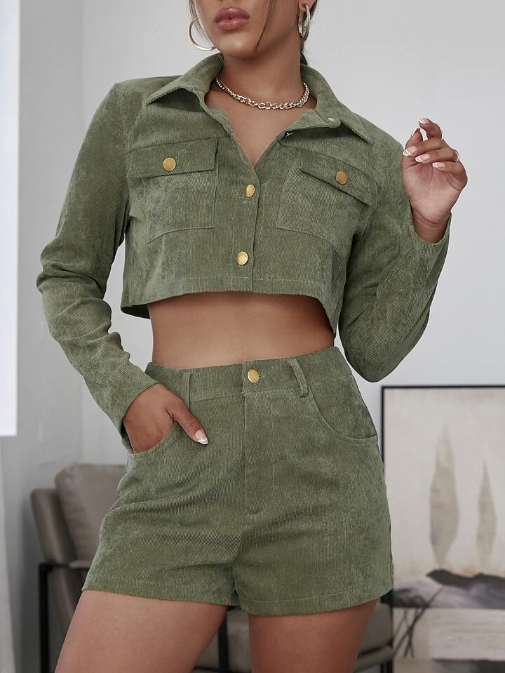 Flap Pocket Crop Corduroy Jacket & Shorts